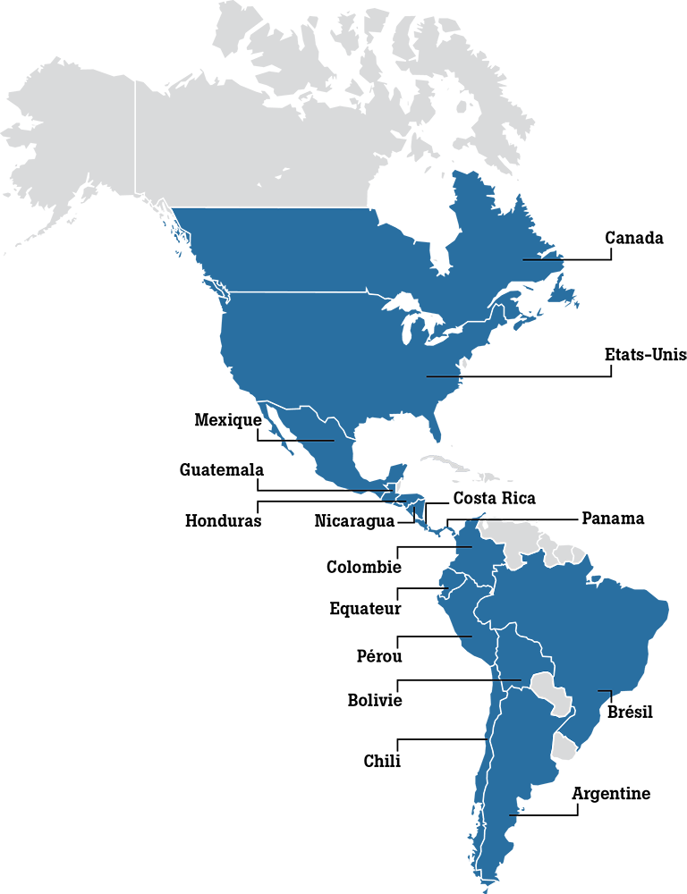 AMÉRIQUES Argentine Bolivie Brésil Canada Chili Colombie Costa Rica Equateur Etats-Unis Guatemala Honduras Mexique Nicaragua Panama Pérou © Copyright www.komtiki.fr – Mentions légales